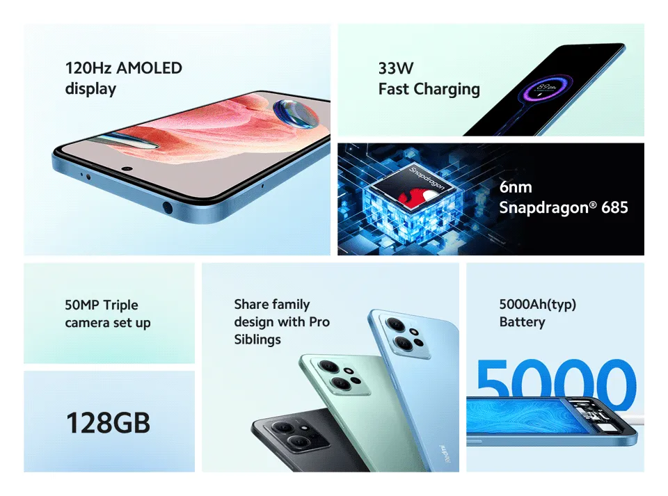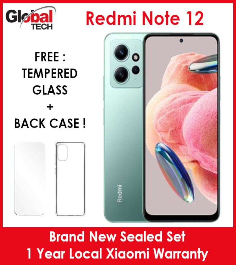 Xiaomi Redmi Note 12 4G 128GB Rom + 6GB Ram / Global Version / 1 Year Local Xiaomi Warranty (FREE : TEMPERED GLASS + BACK CASE)
