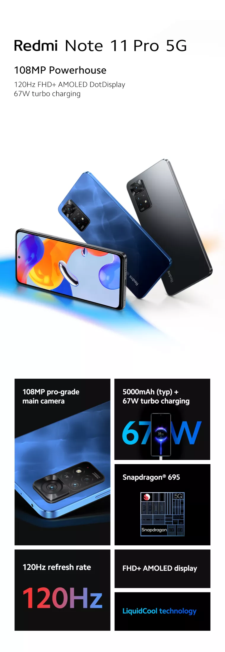 Xiaomi Redmi Note 11 Pro 5G 128GB / Global Version (FREE : TEMPERED GLASS + BACK CASE)