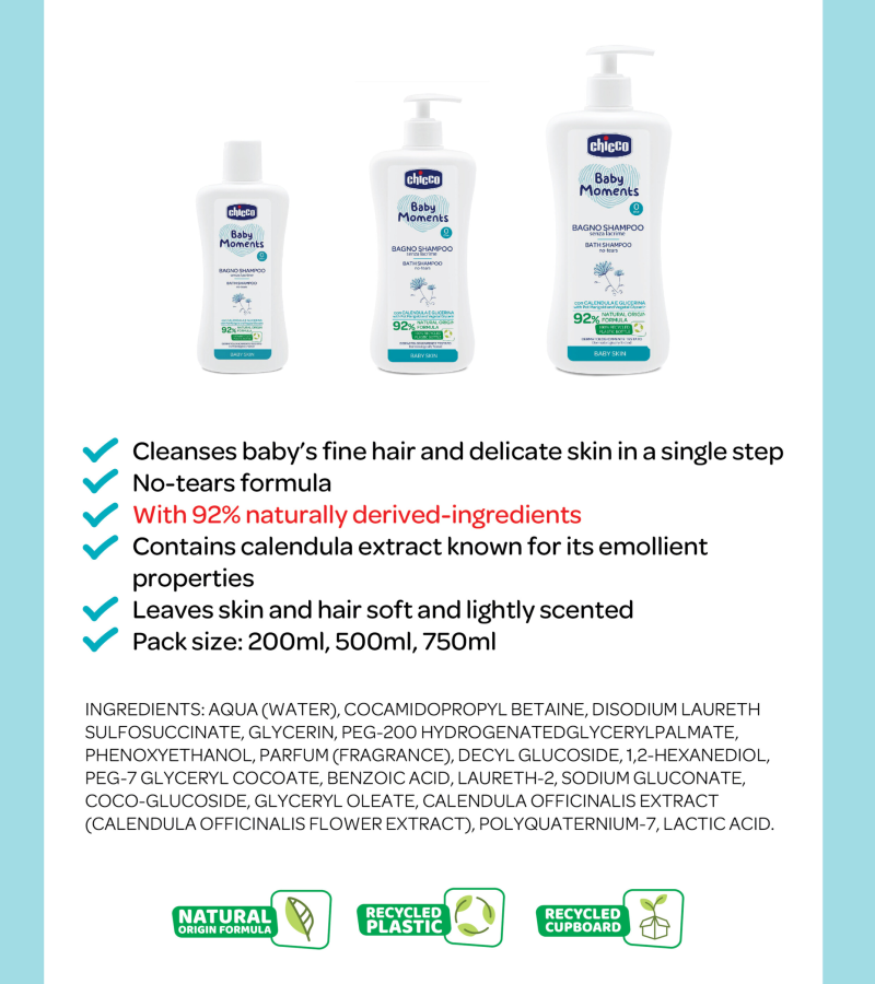 Chicco Baby Moments Set Body Lotion 500ml (Body Lotion 500ml + No-Tears Bath Shampoo 200ml)