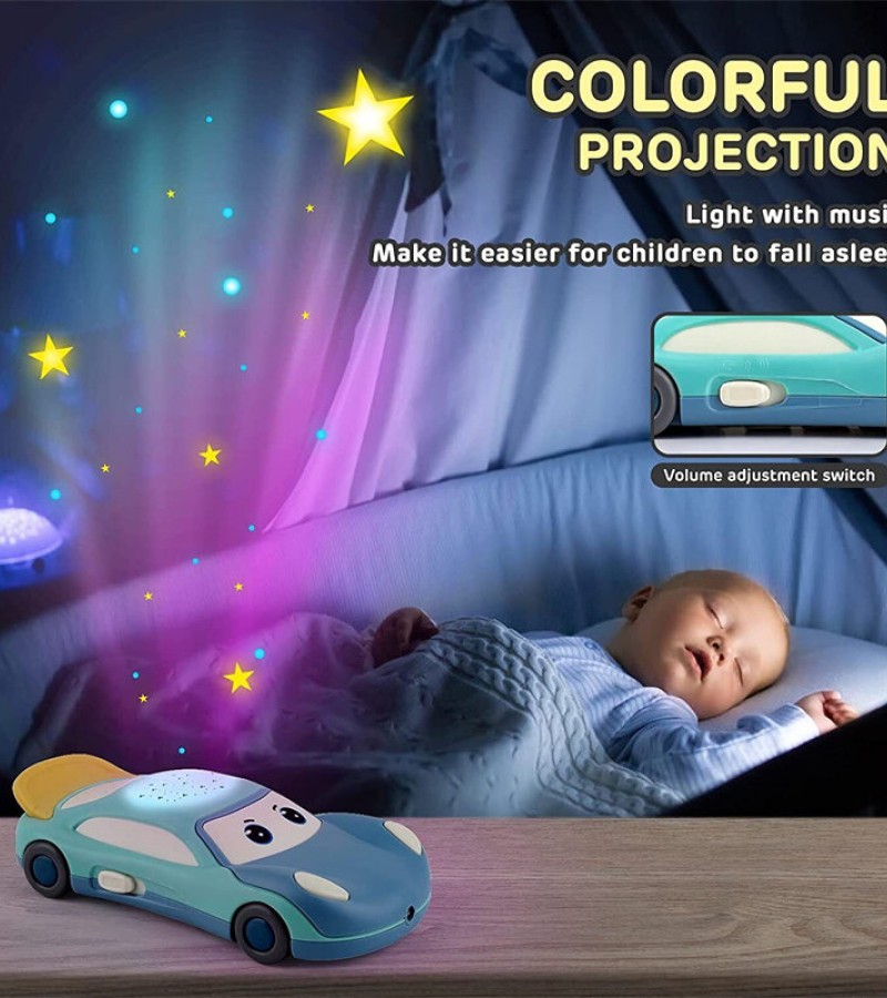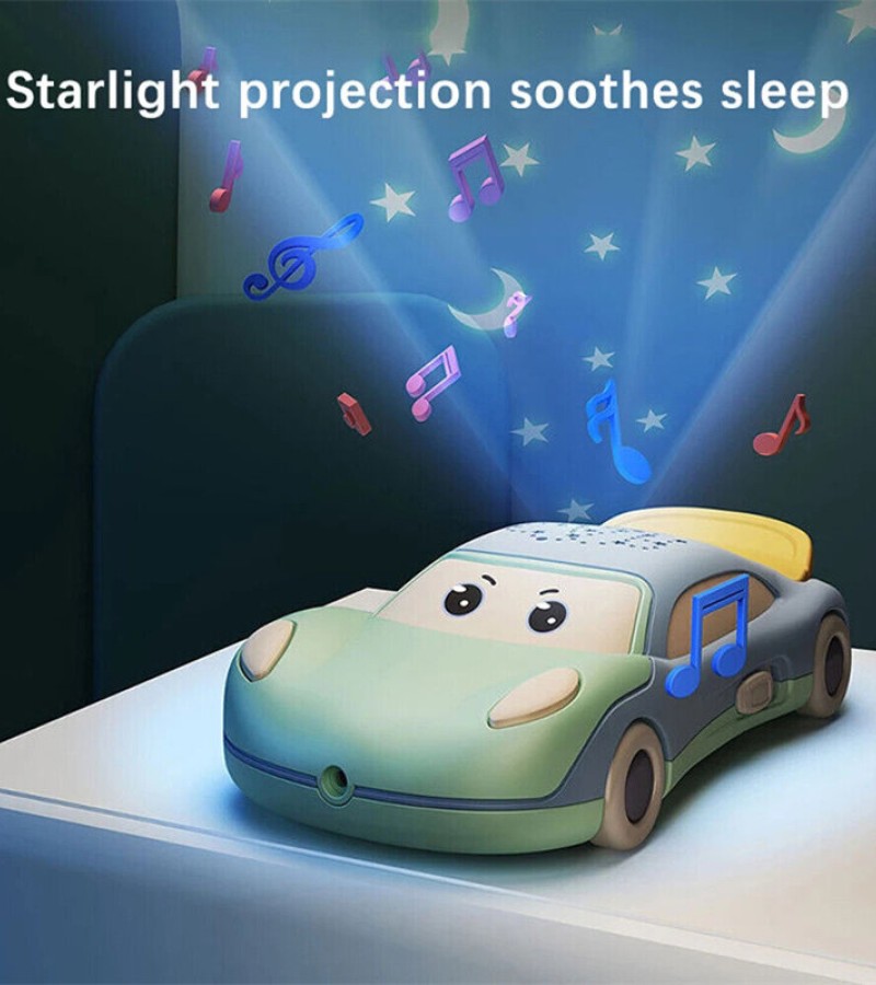 【Starlight Toys】: The car toy has a starlight projection mode, the baby can look directly at the light, and the soft light will not hurt the baby's eyes. When the projection light is on, it will play smooth music by default, but you can choose whether to play music by pressing the "0" key