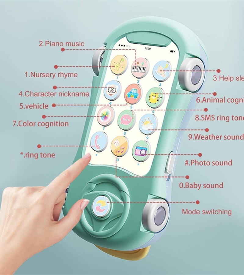 【Mobile Toy Role Playing Game】: 13 buttons to depict cute features like animals, games, weather, camera, etc. This baby phone toy always grabs your baby's attention! Nursery rhymes can be played to promote baby's cognitive and sensory development