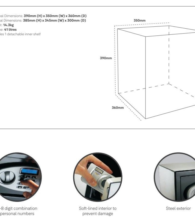 Bring the Yale 41 Litres Digital Safety Locker which helps in protecting the things that matter the most to you. Equipped with 41 litres capacity, it will keep your most important belongings secured. Designed with a strong steel body and 16 mm secure bolts and with a pin code, you are able to gain quick access to your safe. Also, the steel construction with carpeted floor helps to protect against scratches and damages. The Yale 41 Litres Digital Safety Locker nicely accommodates a wide range of items, including legal documents, passports, jewellery, cash, and more. Whether that’s your camera to capture those special moments or a sentimental belonging, this can be the ideal locker you are searching for. The Yale 41 Litres Digital Safety Locker is convenient to operate having a digital keypad with LCD display and a programmable combination of 3 to 8 digits. The electronic lock and digital pin access offer quick set-up and easy operation. Inputting the incorrect code 4 times sounds an internal alarm for 3 minutes and locks out the code pad for that time. It uses 4 AA size batteries (1.5 Volt). In case of battery failure, the safe can be operated with a manual override function with 2 security override keys supplied. It comes with pre-drilled holes (fixing bolts supplied) which allows permanent mounting to floors, walls, or most hard surfaces for additional security.