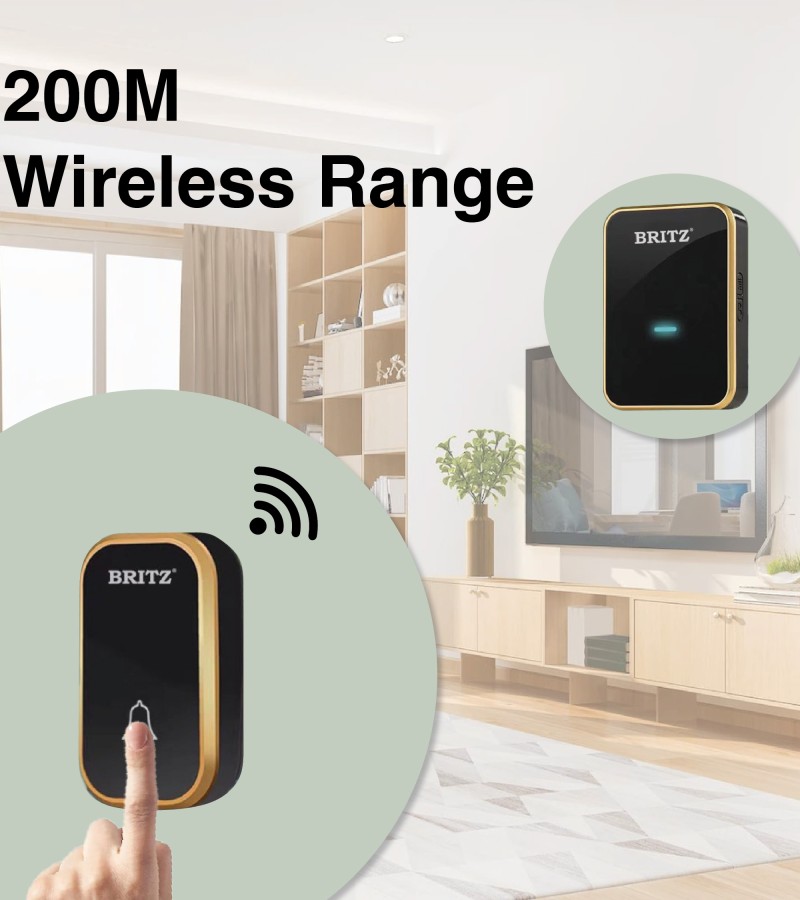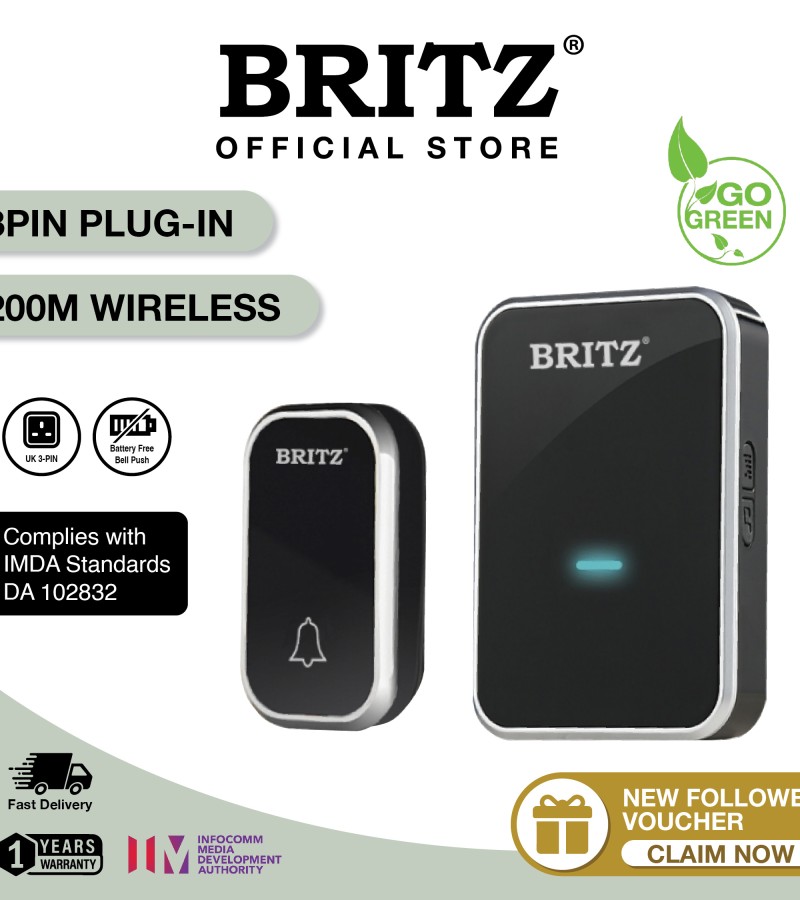 [NO NEED BATTERY] BRITZ Wireless Kinetic Self-Powered Doorbell Door Bell SET [K637AC] [Plug-In] / FREE Adhesive Tape + Screw/ [FAST SHIP OUT 1-2 Working Day]