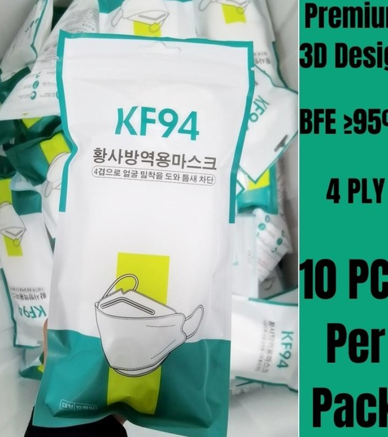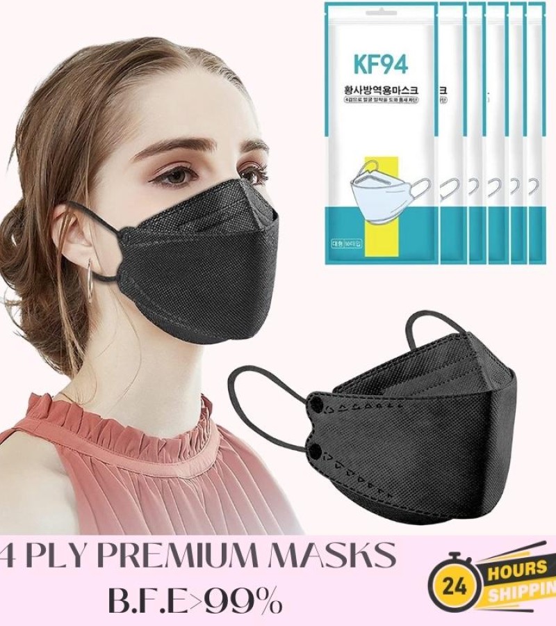 Ready Stock in Singapore Shipped within 24 hours Product Name: KF94 4-PLY PROTECTIVE MASK Premium 3D Design Adult Size: 20.5 *8.5+-5mm Kids Size: 17cm × 7cm (+/- 0.1-0.3cm) 10pcs / Pack Fire & Water Tested ✅BFE>95% 《4-Ply Protective Design》Four layers of protective filtration which includes 2 non-woven outer Layers, 2 melt-blown inner filter, making these KF94 face mask with a light design and ensuring the safety of users. Protect you against Haze, Dust, Carbinol, Pollen, Exhaust and etc. 《3D DESIGN》Face Mask for men, women has unique shaped forming technology, bigger cup design help against particles & breathe smoothly. 《Pleasant Wear》 → It is light-weight and breathable for comfortable wear. #mask #masks #4 PLY #KF94 #KF94 mask #Korea Mask #Medical Mask #Surgical Mask #3D mask #Black Mask #CNY Mask #CNY Masks #CNY Masks Colours #KF 94 Kids Masks #Kids Masks #Children Masks #Disposable Face Masks #Kids 4ply Disposable Mask #BFE95 *Images are for illustration purpose only *The resolution on individual's screen might cause slight color difference **Strictly No Return / Refund / Exchange (Hygiene Reasons)
