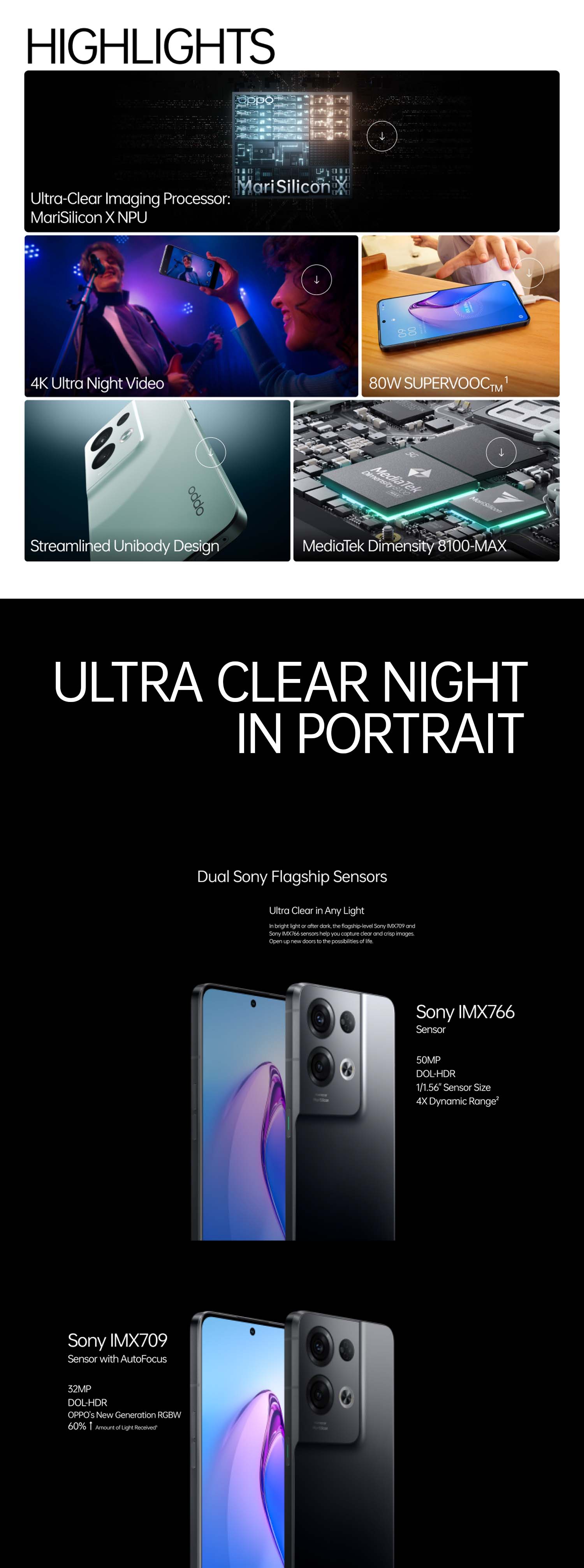 OPPO Reno8 Pro 5G/人像专家/MariSilicon X成像NPU/自动对焦智能自拍/80W SUPPERVOOC