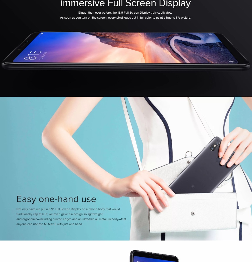 Xiaomi Mi Max 3 // 64GB ROM 4GB RAM / 6.9inches / 5500mAh Battery / AI face unlock / Export set (SG WARRANTY)