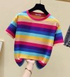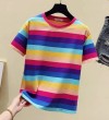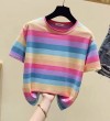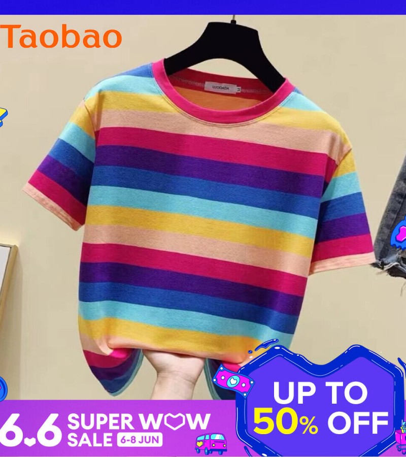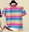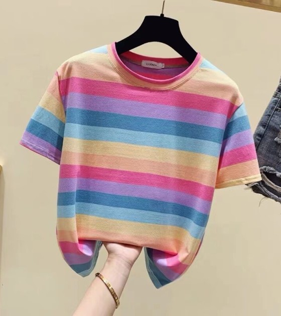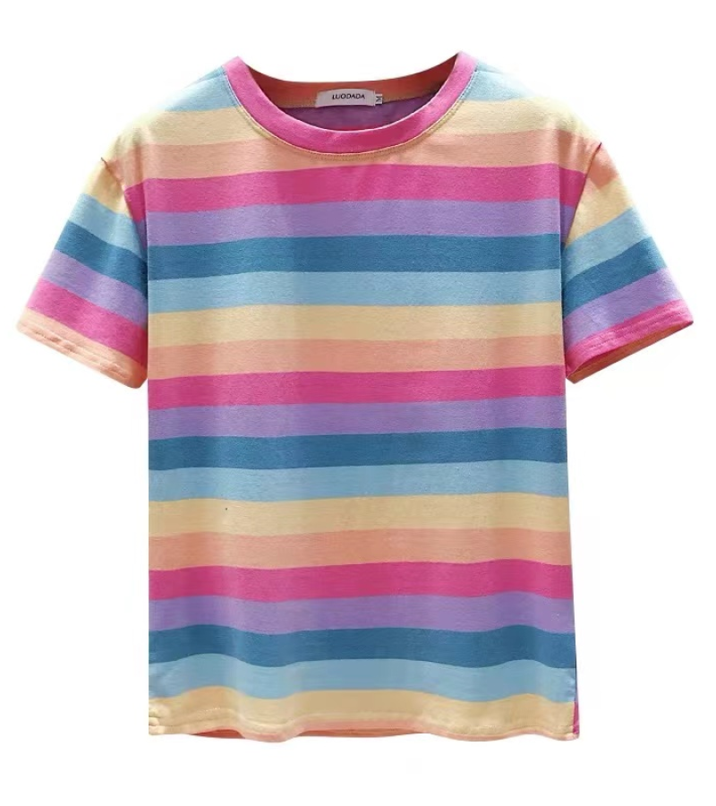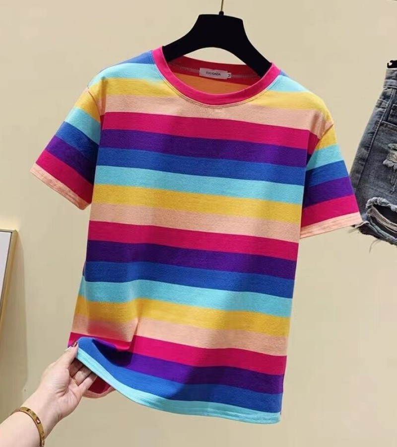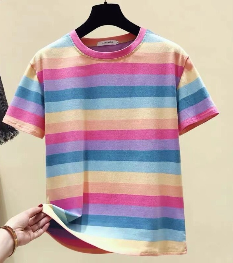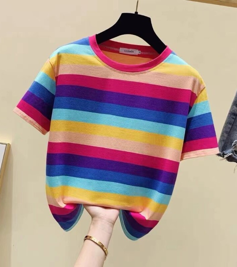 Super Popular Striped Korean Style Loose Round Neck Ins Short Sleeve T-shirt