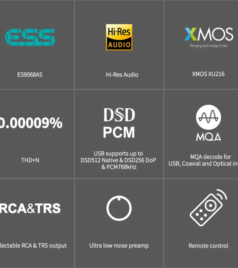 E50 uses the latest high-performance DAC chip ES9068AS. Our excellence in design and engineering provides realistic and transparent sound quality.