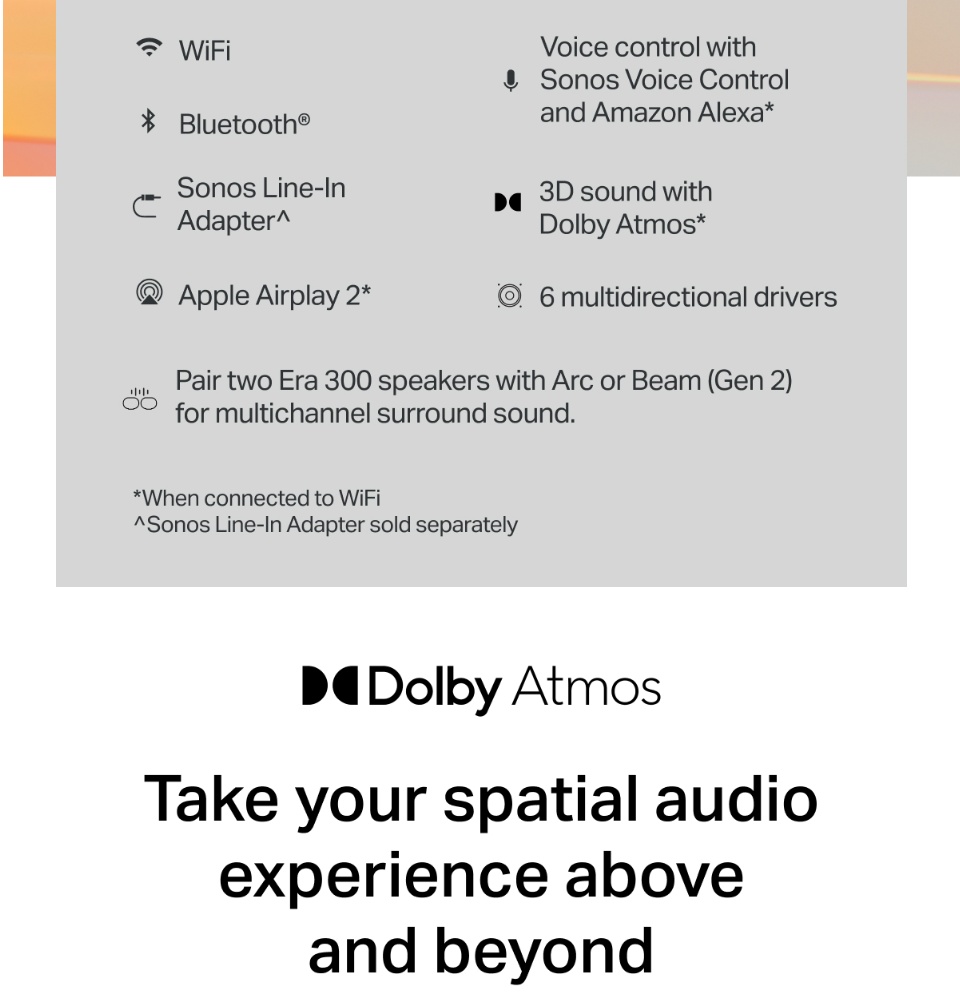 [New] Sonos Era 300 Wireless Smart Speaker with Dolby Atmos and Spatial Audio [Deliver Mid June]