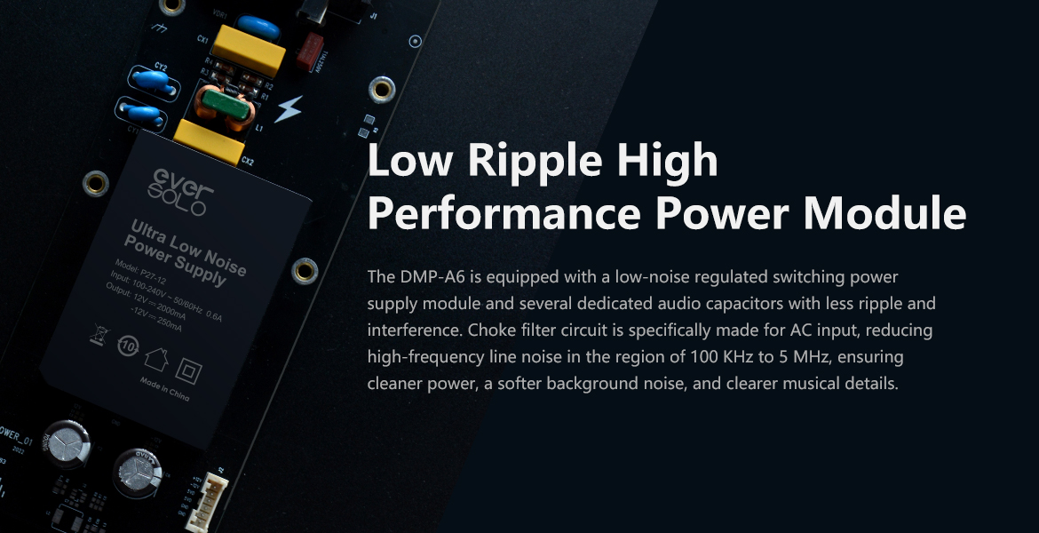 > Low noise, high quality power supply, providing pure power source for audio circuits.